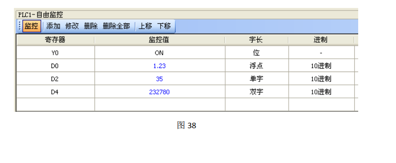 值输出)为例,相应的 PLC 监控画面如图 38 所示。