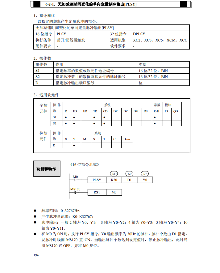指令格式 PLSY [S1 S2 BIT ] 16位脉冲输出指令