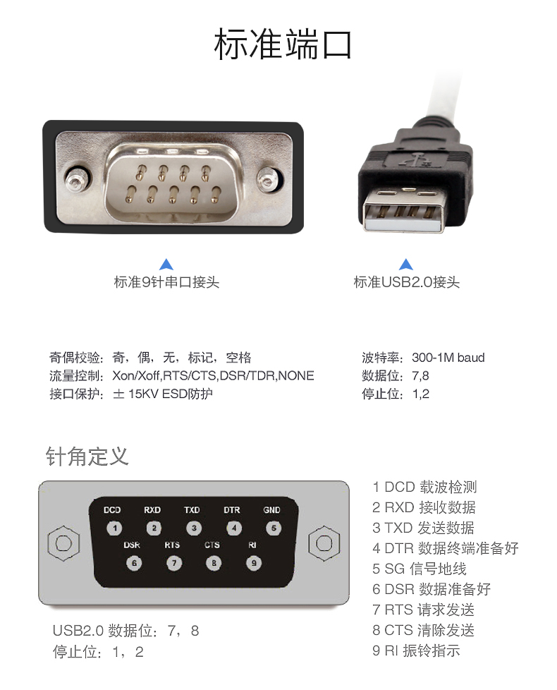 USB转多串口数据线 USB转RS232串口线一拖四4口9针公COM多串口转接线 Z-TEK力特