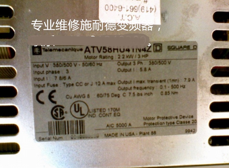 Schneider施耐德变频器ATV58HU41N4Z维修 施耐德2.2KW变频器维修