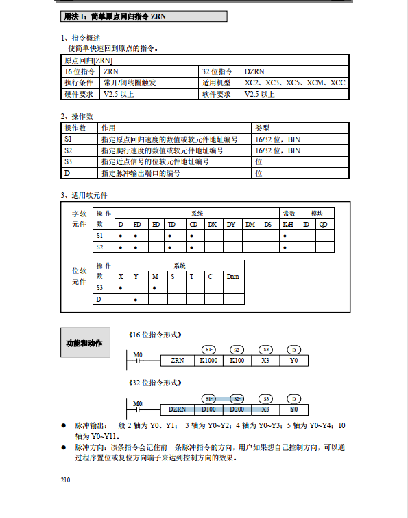 | S1 | 指定原点回归速度的数值或软元件地址编号 | 16/32 位, BIN |