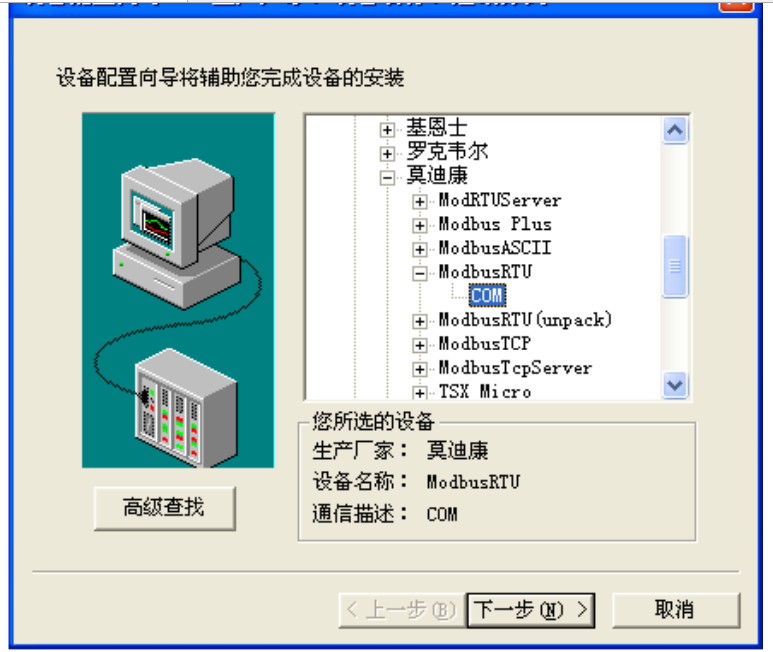 在新跳出的页面中选择“com1” (如图 9 所示) ,在右边双击“新建” ,选择“PLC-