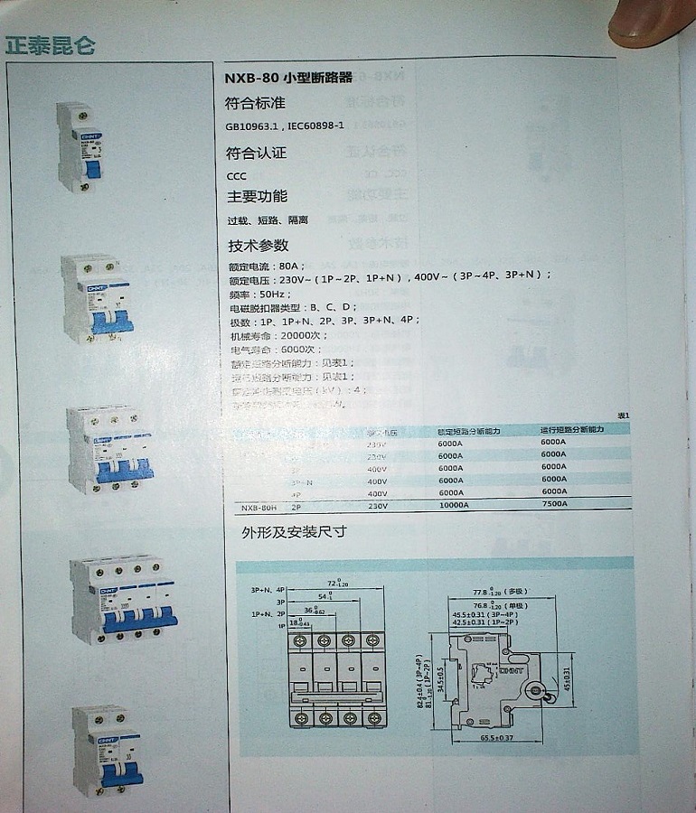 常规电动机微型断路器:NXB-63系列 包括
